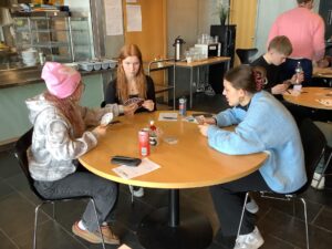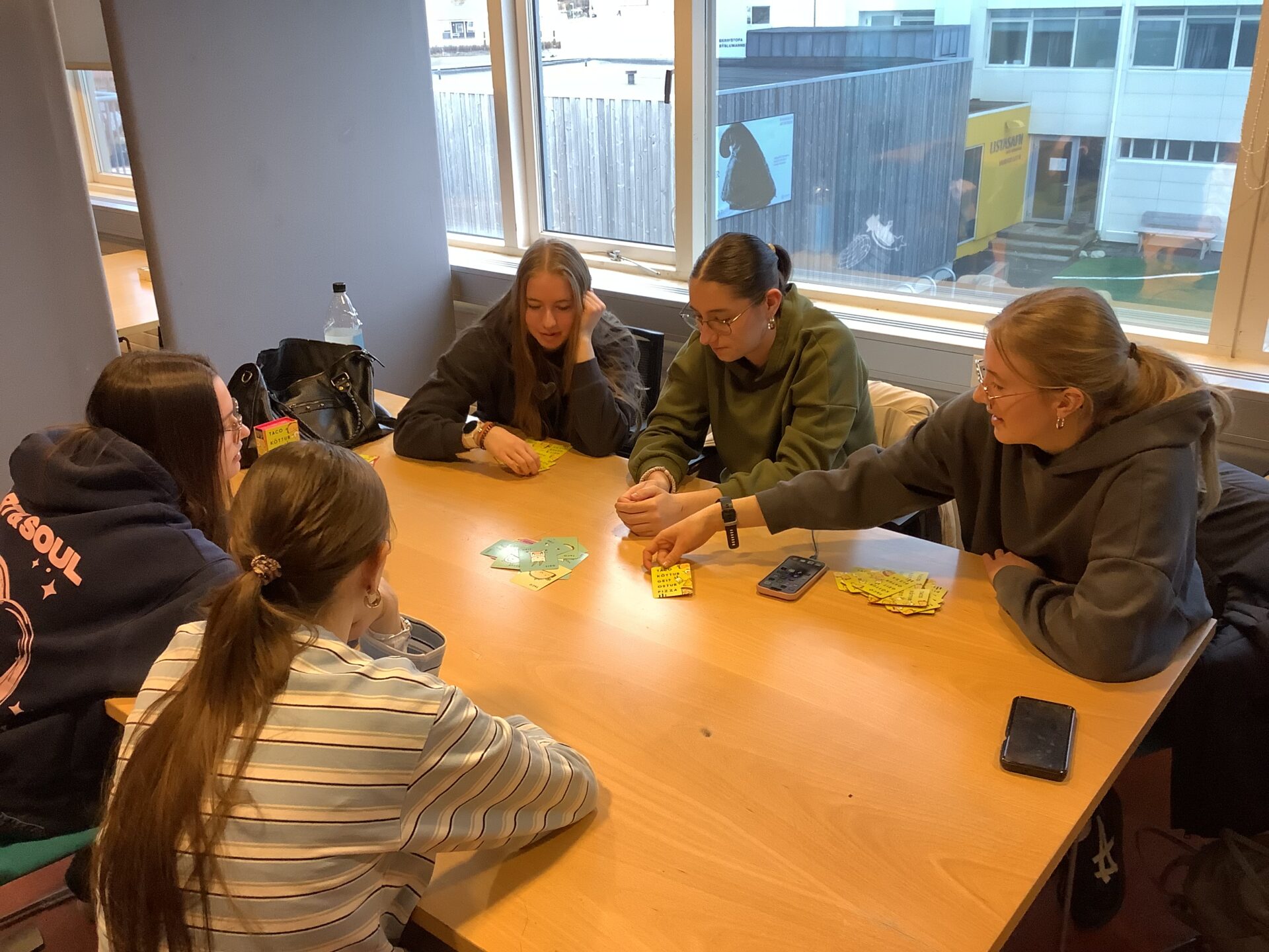 Í lok dags fóru einhverjir til að halda áfram að búa til snyrtibuddur í Vöruhúsinu, einhverjir hálpuðu til við að undirbúa vöfflukaffi og enn aðrir styttu sér stundir við spil og spjall.
