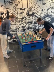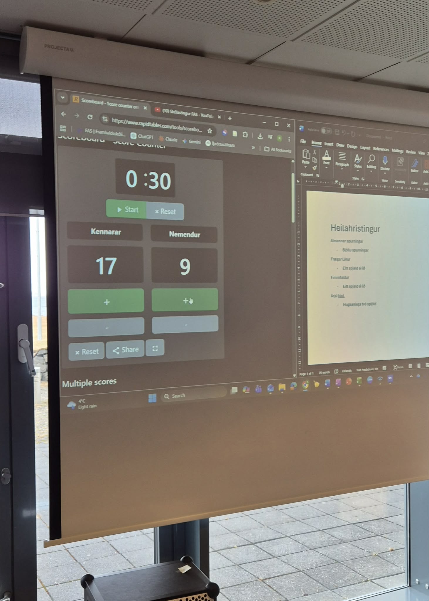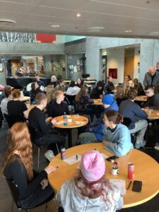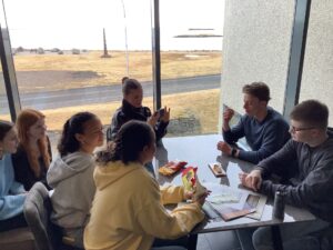 Líkt og í gær var nóg um að vera í FAS. Eftir léttar morgunæfingar var komið að því að eiga notalega stund á bókasafninu. Einhverjir völdu þó að spila tölvuleik. Það er orðinn fastur liður á opnum dögum að nemendur og kennarar reyni með sér í spurningakeppni. Fullltrúar kennara voru Barði, Hlíf og Jóhann Bergur og mættu þau Gettu betur liði FAS. Það voru kennarar sem báru sigur úr býtum og fengu 17 stig en nemendur 9. Það eru engin verðlaun í þessari keppni en aðalmálið er að hafa gaman saman.