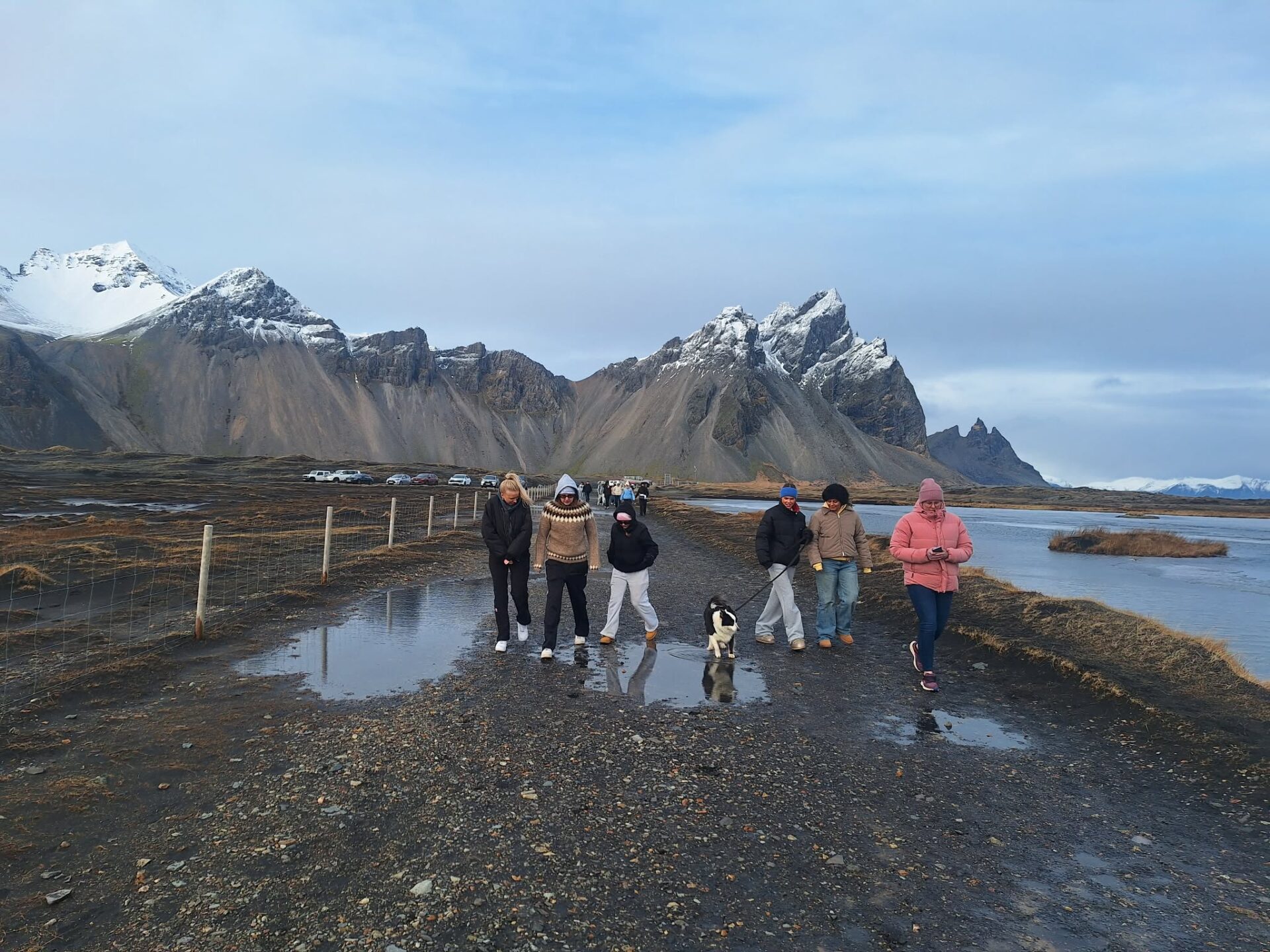 Eftir að hafa gætt sér á vöfflum var haldið á Stokksnes. Þar var farið út á klettana og mátti sjá seli svamla í sjónum. Næsta stopp var við sandöldurnar þar sem gestirnir hlupu alla leið niður að sjó. Síðasta stopp var síðan í víkingaþorpinu. Eins og alltaf er landslagið og umhverfið allt stórbrotið. Gestirnir eiga vart orð til að lýsa hrifningu sinni á svæðinu.