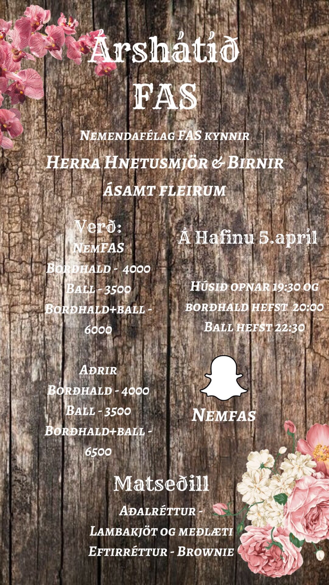 Loksins er komið að árshátíð FAS en hún verður haldin á morgun, fimmtudag 5. apríl á Hafinu hér á Höfn. Húsið opnar klukkan 19:30 og borðhald hefst klukkan 20. Í boði er gómsætt lambakjöt og súkkulaðikaka í eftirrétt.