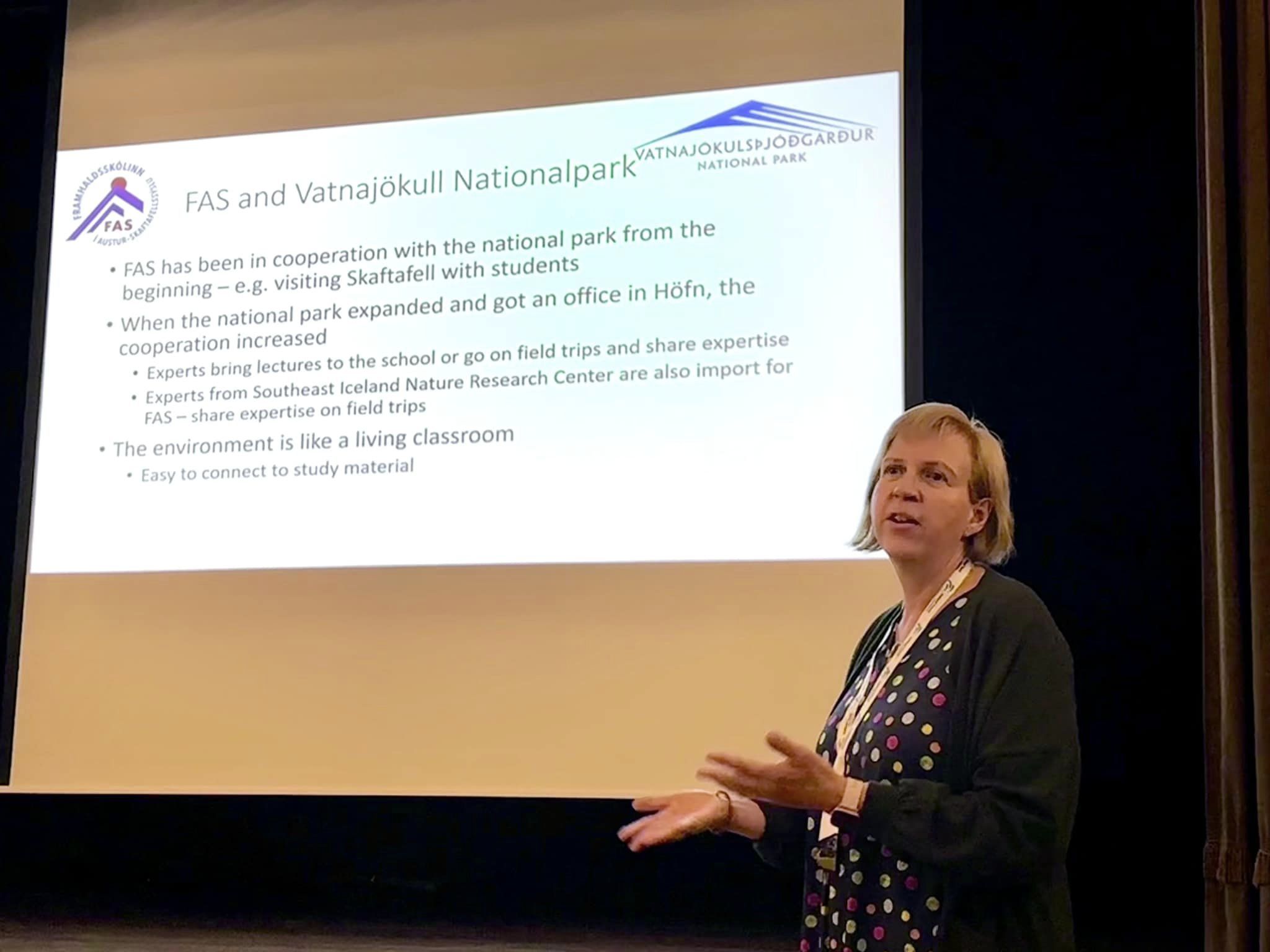 Okkur í FAS þótti það mikill heiður að vera beðin um að vera með málstofu á ráðstefnunni og fá að kynna skólann, hvernig samstarfinu hefur verið háttað í gegnum tíðina og hver ávinningurinn af samstarfinu er. Það voru þær Hjördís og Svanhvít Helga sem sáu um málstofuna fyrir FAS og mættu ríflega 40 gestir til að hlýða á erindi þeirra. Eftir kynninguna voru umræður og sýndu gestirnir sérstakan áhuga á náminu í fjallamennsku og hvernig það eflir bæði samfélagið og samvinnuna við þjóðgarðinn. Myndirnar sem fylgja fréttinni eru fengnar af fésbókarsíðu Rannsóknarsetursins á Hornafirði.