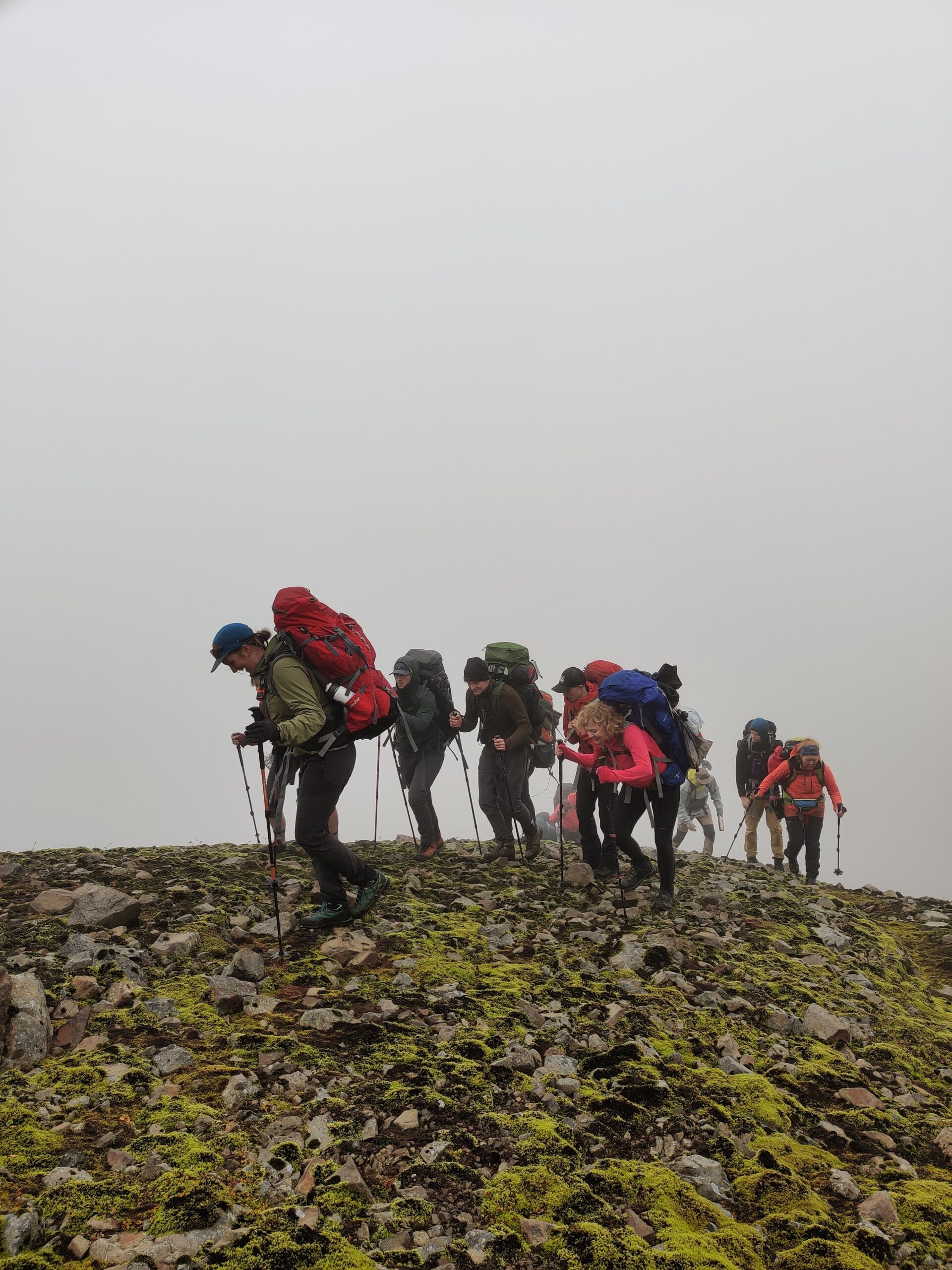 Hópurinn gekk upp í svartaþoku þegar komið var upp úr Jökulgilinu, nærri Hofsjökli. Það gerði rötunaræfingar með korti, símaforritum og áttavita mun raunverulegri og nauðsynlegar. Þá var kærkomið útsýnið í átt að Jökulsá og Kömbum þegar rofaði til. Gangan yfir Morsá og í Víðidal var sólrík og þaðan hafði hópurinn útsýni inn á austanverðan Vatnajökul. Kíkt var ofan í Tröllakróka á leið í Múlaskála og bæði Axarfellsjökull og Snæfell blöstu við. Í ferðinni skiptust nemendur á að leiða hópinn og velja hentuga gönguleið á degi hverjum.
