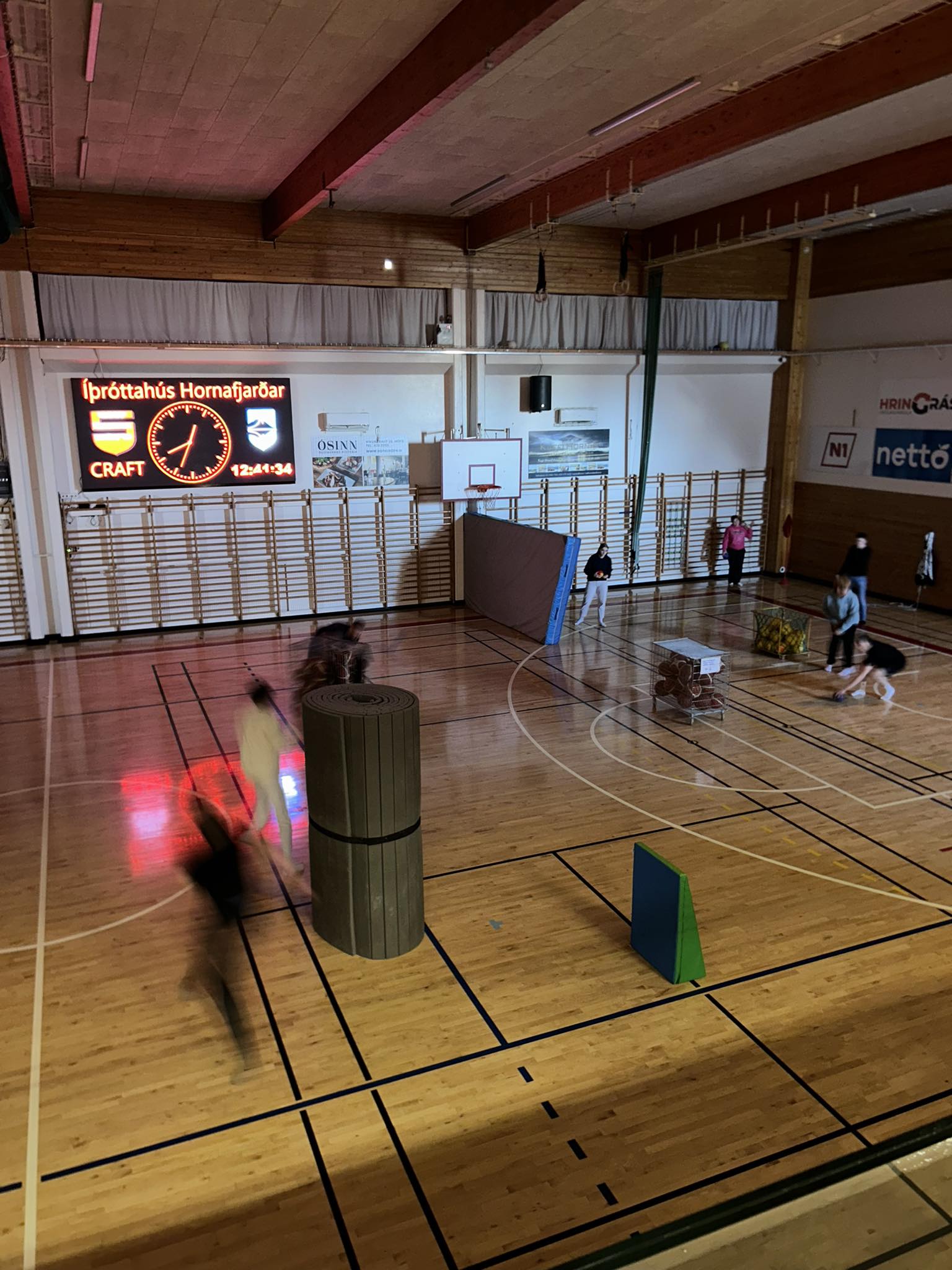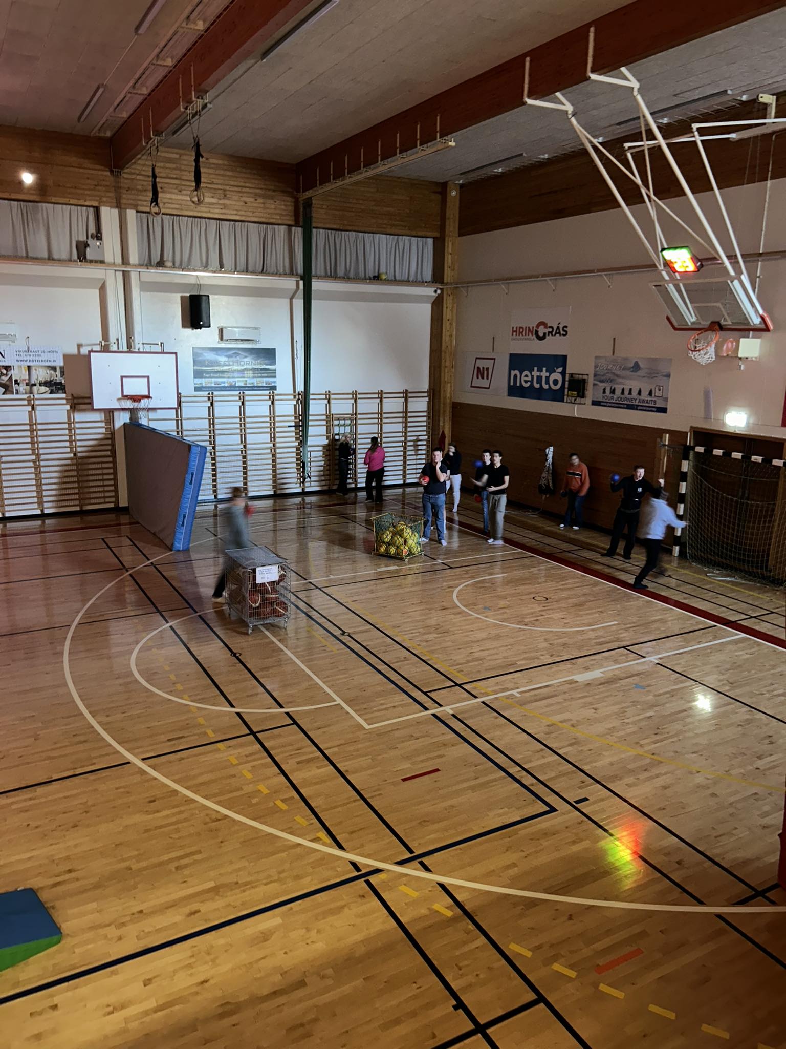 - Í íþróttahúsinu var „snjóboltastríð“.