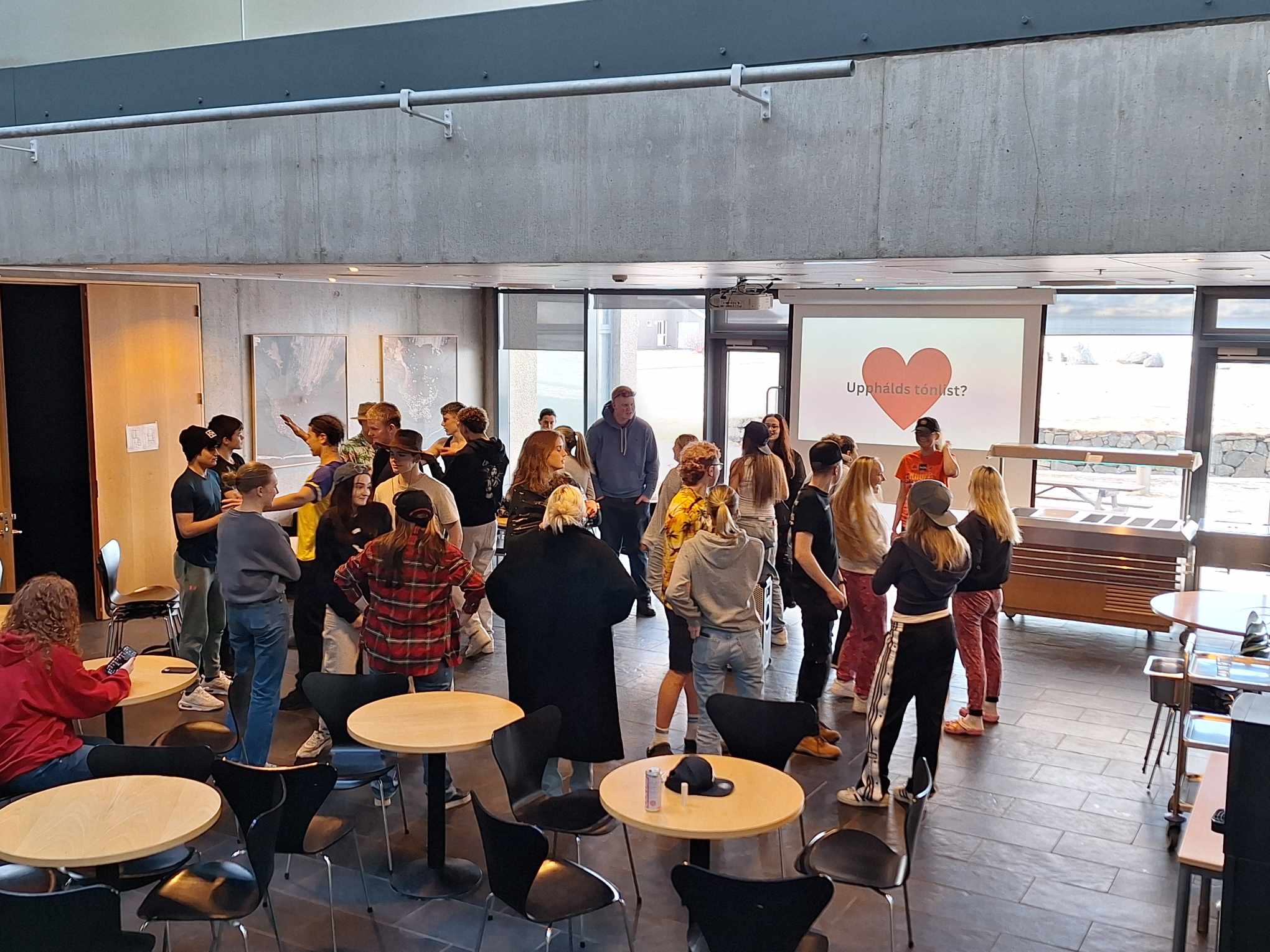 Af þessu tilefni brugðu nemendur á leik í vinnustund og héldu svokallað „hraðstefnumót“. Nemendur hittust á Nýtorgi og stilltu sér upp í tvo hringi. Þeir áttu síðan að ganga í takt við ákveðið lag í hring og þegar lagið stoppaði átti hvert par að ræða ákveðið málefni í tvær mínútur. Þetta var hin mesta skemmtun og ekki að sjá annað en að allir skemmtu sér vel.