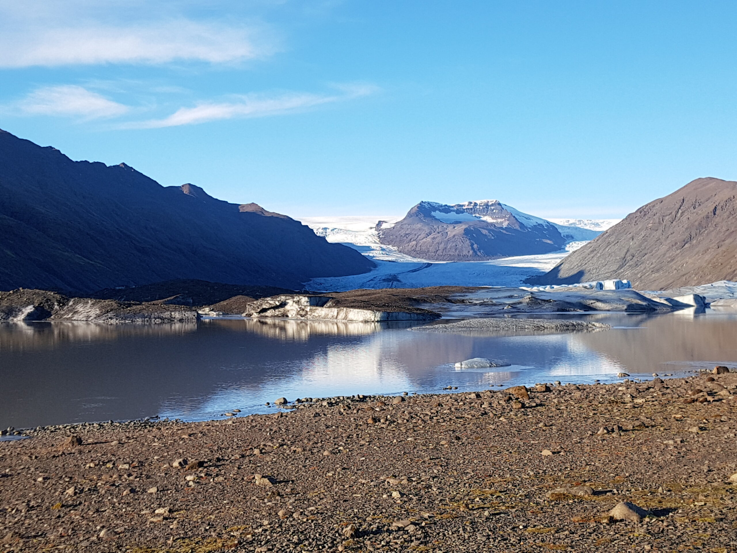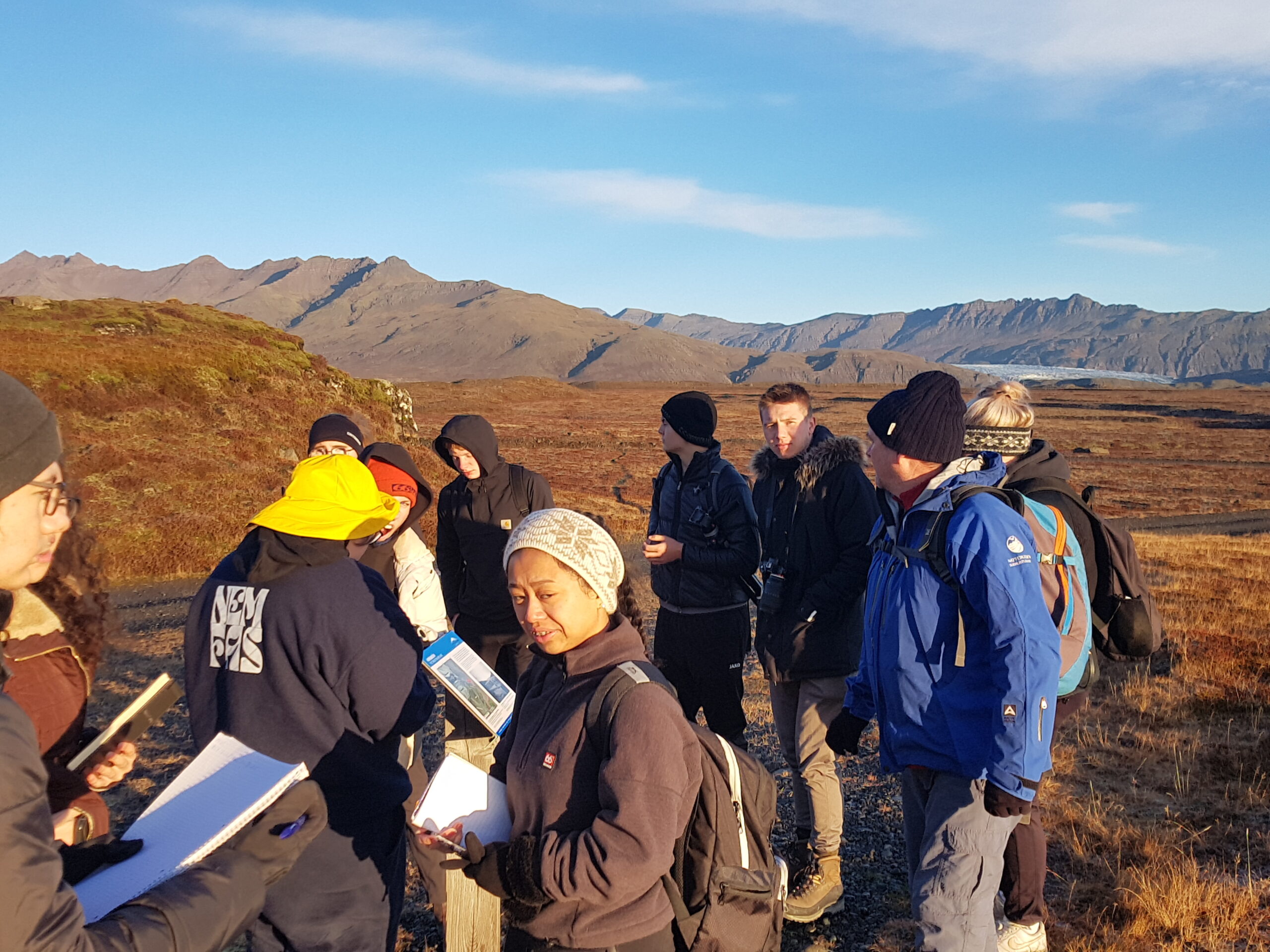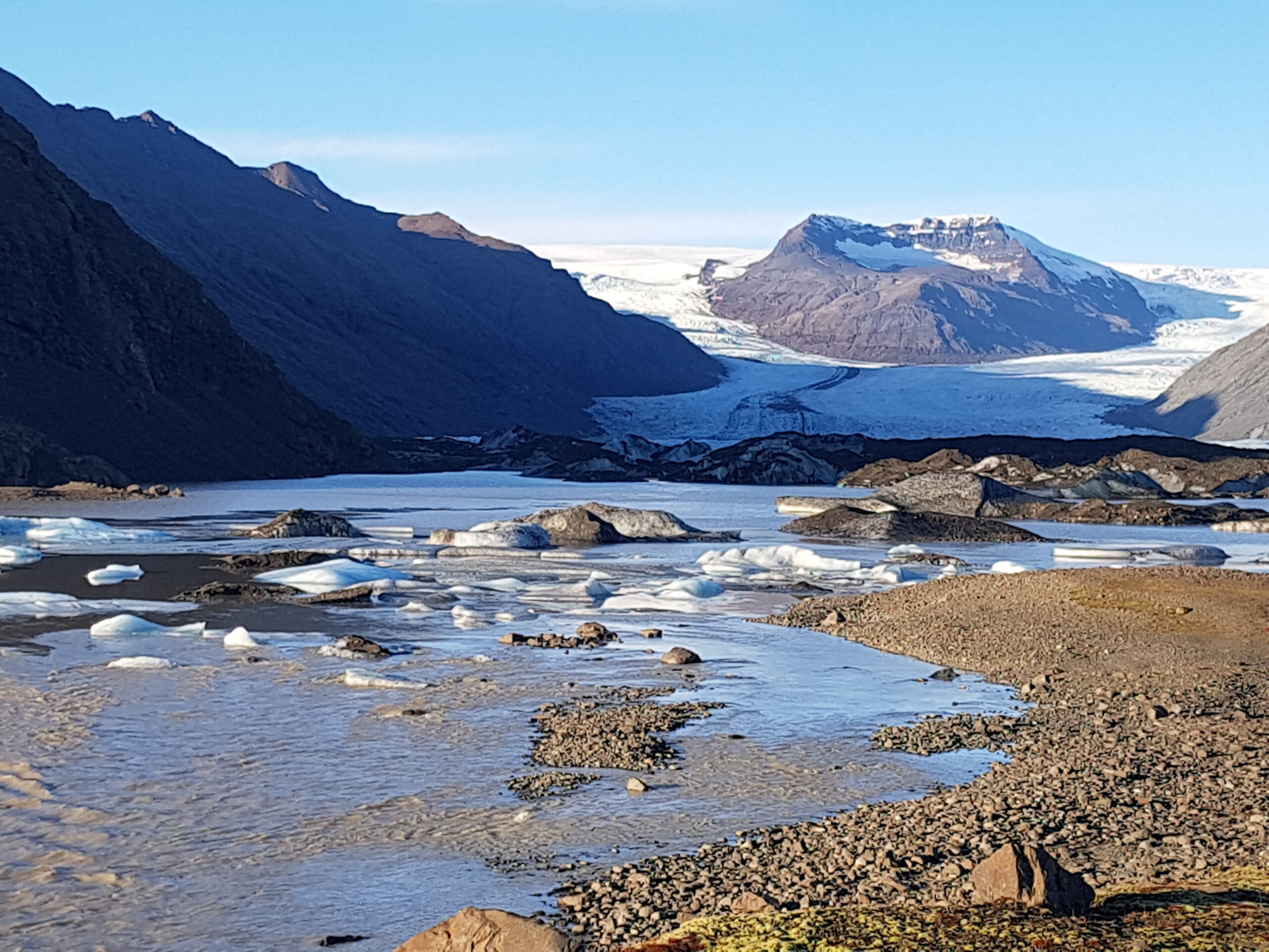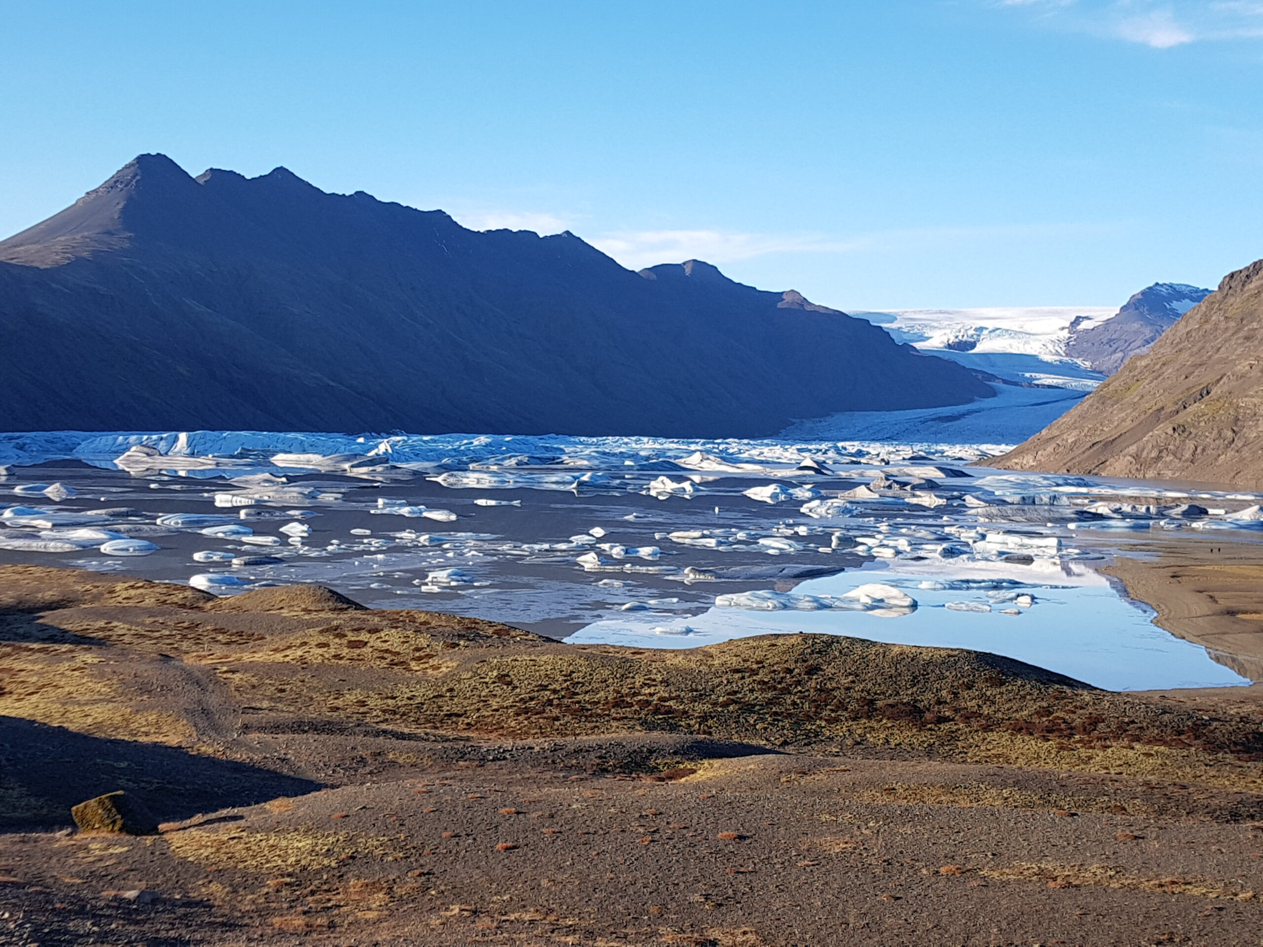 Í dag var komið að árlegri ferð að Heinabergsjökli og eru það nemendur í Inngangsáfanga að náttúruvísindum sem fara í þessa ferð. Þegar var farið í sambærilega ferð fyrir ári síðan var orðið ljóst að miklar breytingar höfðu orðið á jökulsporðinum á Heinabergsjökli og fremsti hlutinn sem eitt sinn var hluti af jöklinum er nú stærðarinnar jaki sem er þakinn seti. Það er því ekki hægt að mæla stöðu jökulsins eins og gert var um árabil en þess í stað er áhersla á að fræða nemendur um landmótun jökla og hvernig hægt sé að rýna í landslag og sjá þær breytingar sem hafa orðið eða „lesa í landslagið“ eins og við segjum stundum.