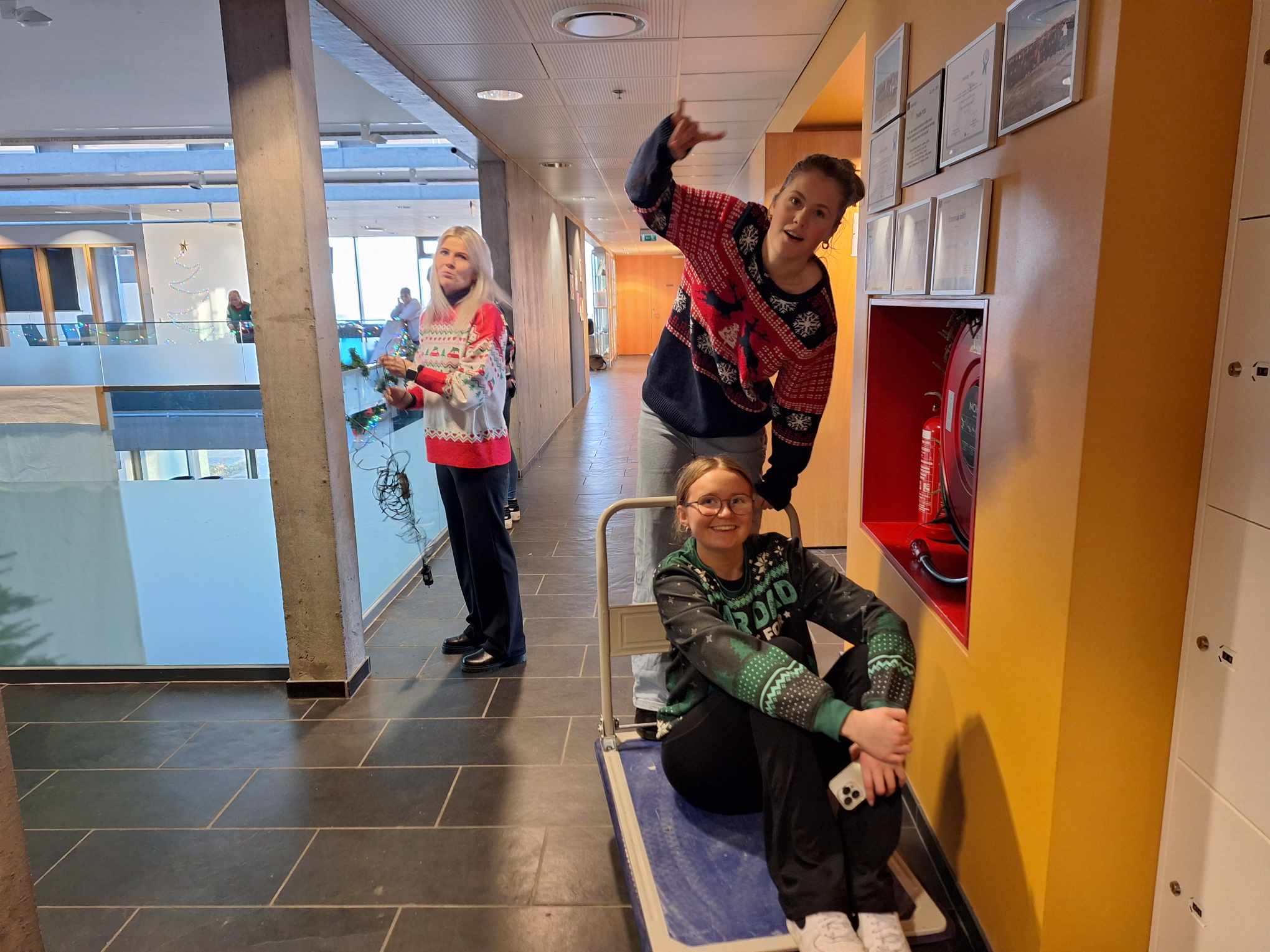Á efri hæðinni í Nýheimum var vinnustundin nýtt til að skreyta og má með sanni segja að margar hendur vinni létt verk. Einhverjum fannst ekki heldur úr vegi að bregða aðeins á leik.