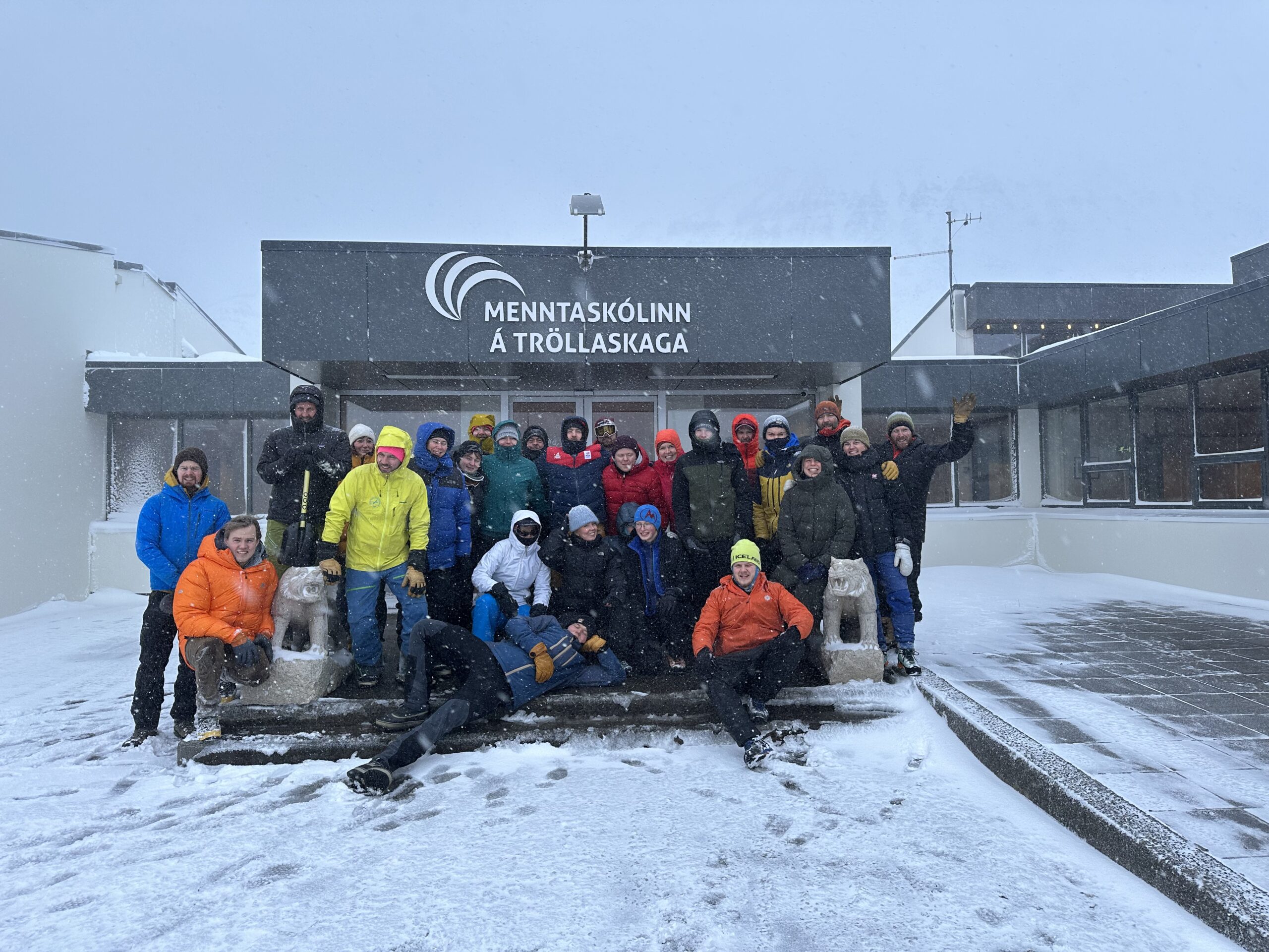Nemendur í grunnnámi Fjallamennskunáms FAS lögðu leið sína norður í land til Dalvíkur dagana 2. – 6. febrúar. Þar var á dagskrá að skíða saman og læra allt sem hægt er að læra um snjóflóð á fimm dögum. Fyrirlestrar og innikennsla fóru fram í Menntaskólanum á Tröllaskaga en þar er glæsileg aðstaða til kennslu. Útiæfingar og skíðamennska fóru fram á Dalvík og í Hlíðarfjalli.