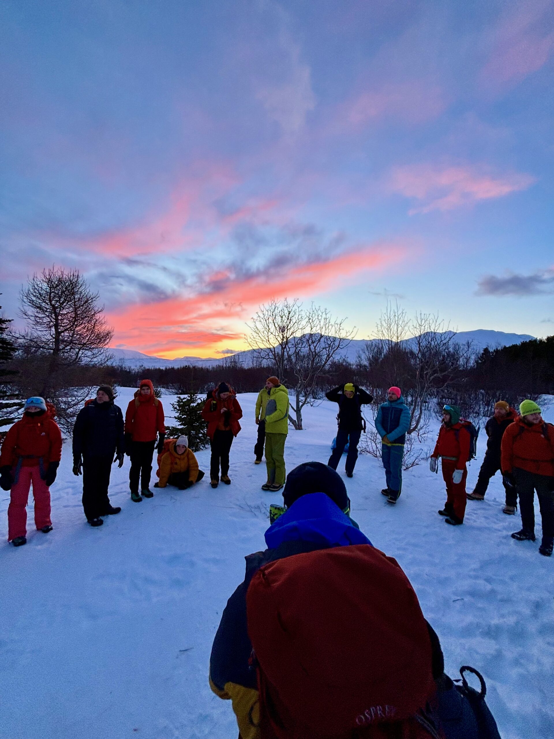 Eins og svo oft áður þá stýrði veður svolítið förinni og dagskráin á þessu námskeiði hefur alltaf verið sveigjanleg eftir því. Nemendur og kennarar sýndu þolinmæði og aðlögunarhæfni enda mikilvægt að vera móttækileg fyrir veðri og vindum og breyttum áformum. Þannig er eðli náms sem fer fram úti I náttúrunni en alltaf þarf að vinna með náttúruöflunum sem hafa úrslitavald þegar upp er staðið.