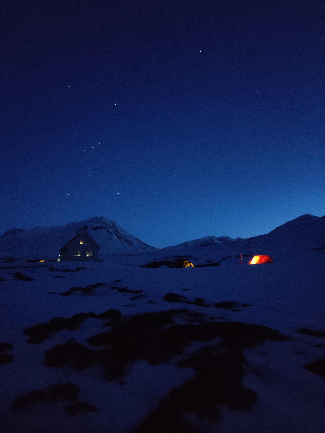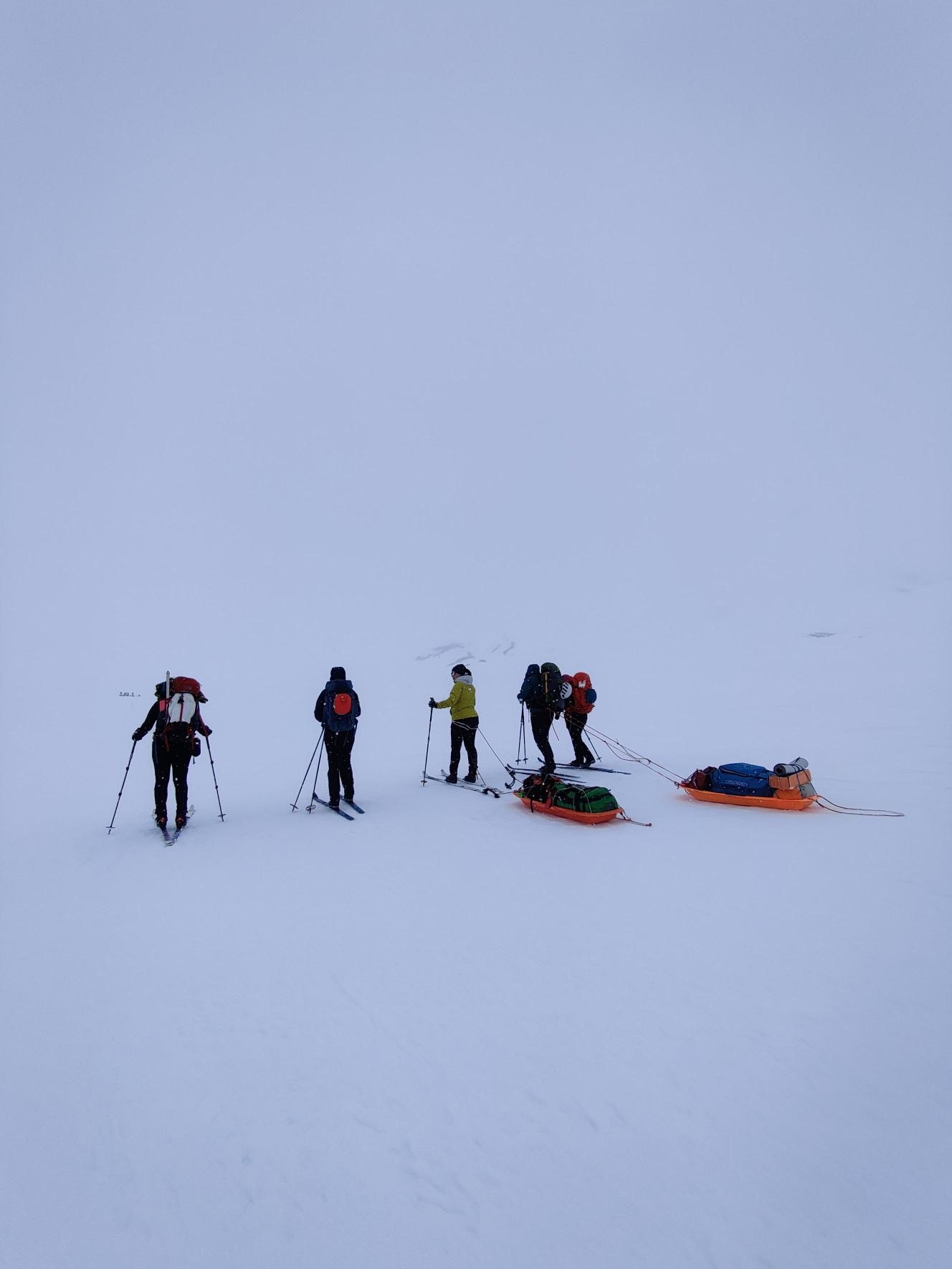 Vetrarferðamennskuáfanginn í fjallamennskunáminu hófst með vinnustofu í Reykjavík þar sem nemendur fóru yfir leiðaval, hvernig á að ferðast án ummerkja og notkun á viðleigubúnaði í vetraraðstæðum. Daginn eftir var förinni heitir norður í fjögurra nátta tjaldferðalag með ferðaskíði og púlkur: Stefnan var tekin í Fjörður austur af Grenivík. Tjöldum var slegið upp eftir nokkra klukkutíma á skíðunum fyrsta daginn. Næsta morgun skíðaði hópurinn alla leið í skálann á Gili sem er á miðjum Flateyjarskaganum norðanverðum. Áhersla var lögð á rötun, leiðarval ásamt hóp- og hraðastjórnun á þessum ferðadögum. Hópurinn tjaldaði við skálann og nýtti sér frábæra aðstöðu sem þar var til að hita vatn, borða og funda innandyra.