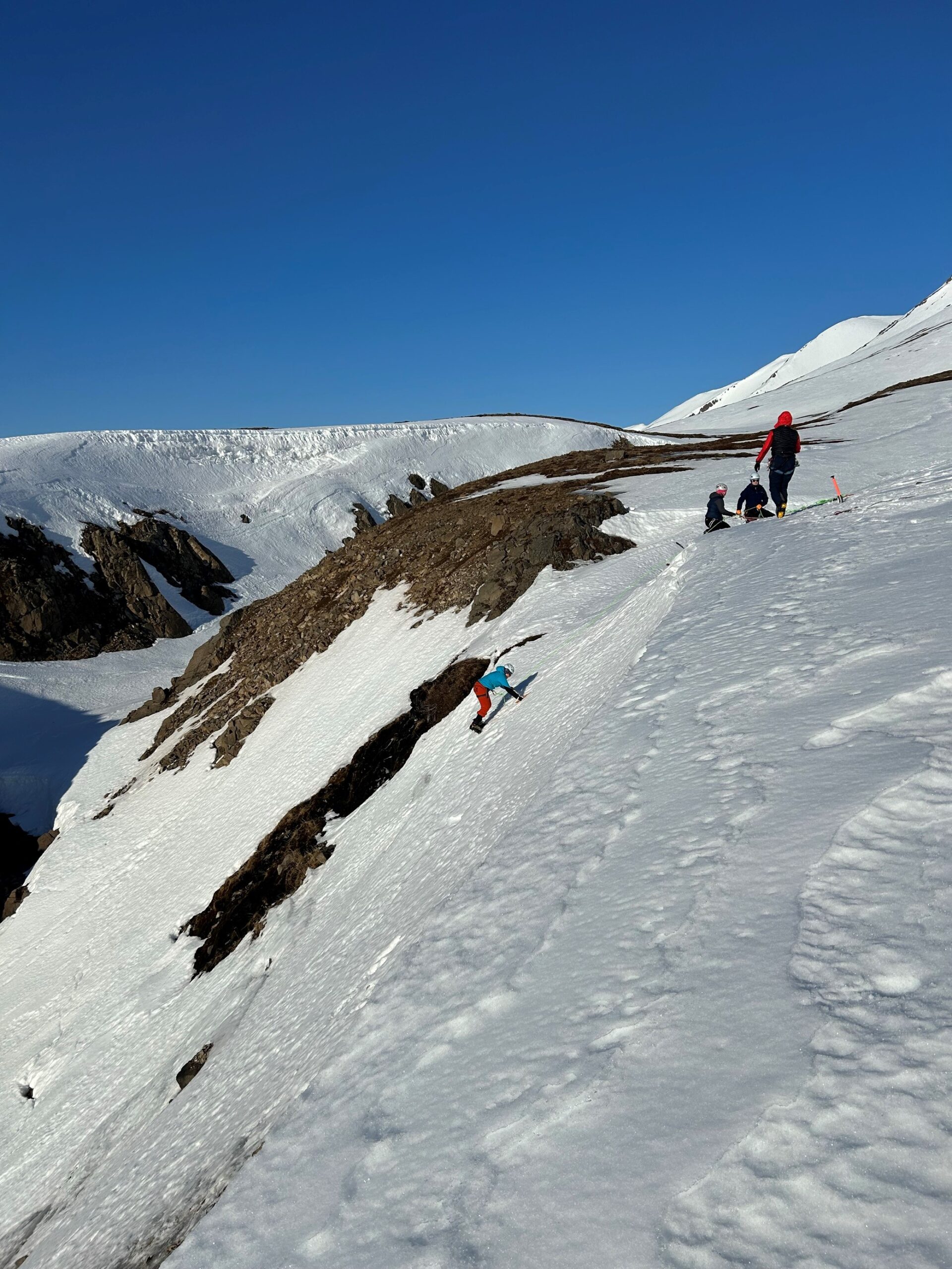 Daginn eftir var farið yfir tæknilegri atriði í vetrarferðamennsku s.s. hvernig á að ganga í línu þegar ferðast er um á snjóhuldum jöklum, mismunandi gerðir snjóakkera, ísaxarbremsu og göngutækni í snjó. Hóparnir völdu sér landslag í fjalllendi nærri skálanum til að æfa þessi atriði, en þennan dag eins og aðra var hópnum skipt upp í fjóra minni hópa sem ferðuðust hver í sínu lagi.